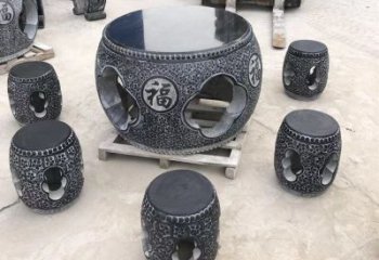 休閑石桌石凳圓鼓芝麻黑戶外擺放家庭別墅裝飾