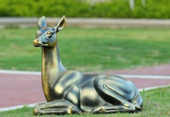 不銹鋼仿銅睡鹿雕塑,點(diǎn)綴戶外廣場(chǎng)草坪