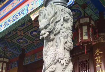 精美仿古園林,花崗巖石龍盤(pán)柱點(diǎn)綴