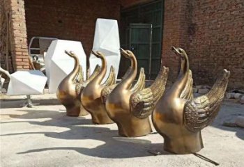 仿銅噴水雕塑,玻璃鋼景觀天鵝水池,為廣場園林擺放