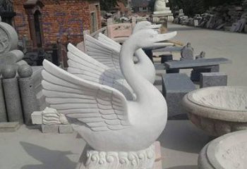 漢白玉大理石噴水天鵝群園林戶外擺放裝置
