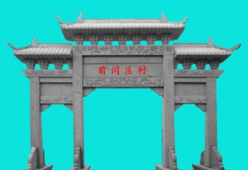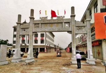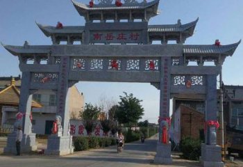 裝飾新村莊單門牌坊,青石鏤空浮雕精美