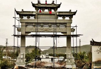 精致大理石浮雕牌坊,點綴村口恢弘氣派