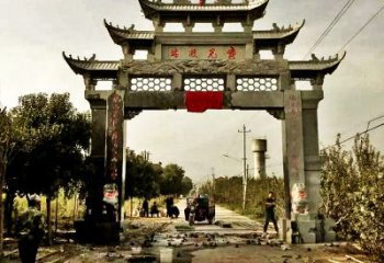 傳統(tǒng)中式園林村莊入口石雕牌坊