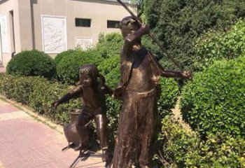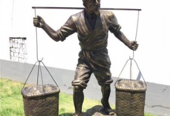 玻璃鋼仿銅民俗挑扁擔古人雕塑落地小品