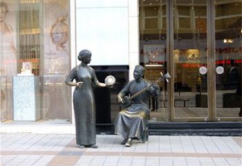 玻璃鋼鑄銅民俗人物小品擺放戶外表演裝飾品