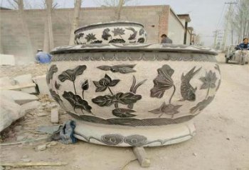 蓮花青石大型戶外浮雕石雕花盆雕塑