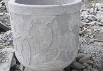 漢白玉浮雕荷花養(yǎng)魚(yú)缸,精美庭院裝飾戶(hù)外中式花盆