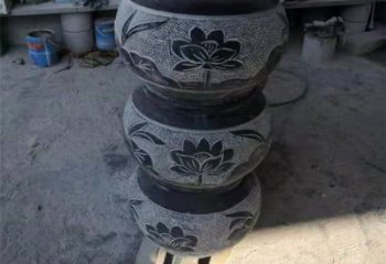 手工定制青石仿古魚缸花盆景觀石雕花雕刻盆擺件花缽雕塑
