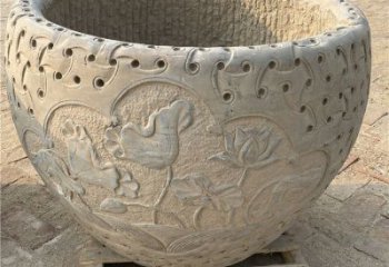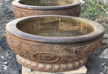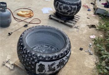 仿古庭院園林石雕浮雕花紋魚缸雕塑