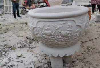 大型漢白玉浮雕菊花養魚水缸