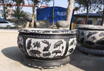 仿古庭院荷花鯉魚浮雕石雕缸雕塑