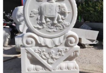 雕刻精美的大理石門口抱鼓雕塑
