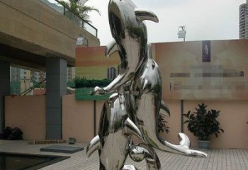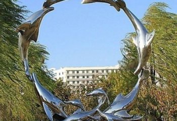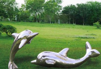 精美不銹鋼海豚雕塑,點綴別墅庭院