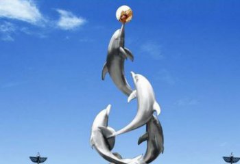 不銹鋼海豚一群搶球雕塑