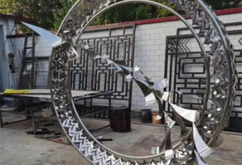 不銹鋼鏤空?qǐng)A環(huán)造型夜光水景雕塑