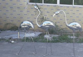 不銹鋼火烈鳥雕塑,完美擺放于室內外庭院