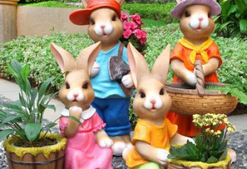 玻璃鋼彩繪兔子雕塑,為花園景區增添精彩