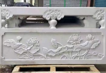 手工精雕漢白玉制荷花防護欄板臺階寺院扶手