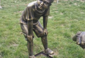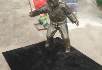 優雅銅色仿玻璃鋼兒童打陀螺雕塑