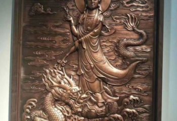 銅浮雕乘龍觀音壁畫