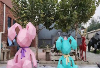 幾何萌趣?三貓嬉春—幾何不銹鋼貓雕塑