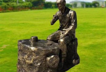 傳統文化主題玻璃鋼仿銅喝茶雕塑