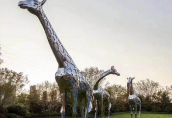 不銹鋼大型長頸鹿雕塑,為園林草地擺放