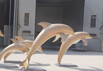 高端不銹鋼海豚雕塑,為售樓部門口增添完美視覺