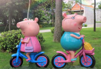 玻璃鋼制幼兒園雕塑——佩奇與喬治騎車
