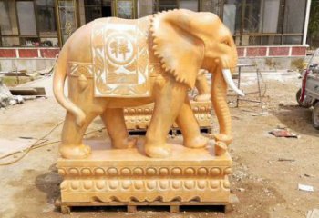 絢麗多彩的石雕大象雕塑,點綴晚霞紅,美化別墅景觀