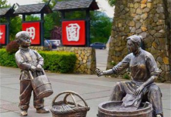 戶外園林景觀銅鑄坐著的母子雕塑