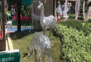 街道草地擺放不銹鋼鏡面鹿動物雕塑