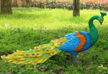 花園公園擺放的玻璃鋼彩繪孔雀雕塑