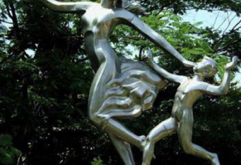 不銹鋼仿銅抽象母子雕塑——守護家庭幸福的象征
