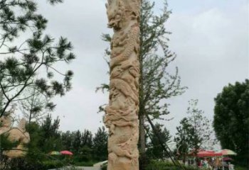 鑫特雕塑 景觀雕塑 擺件雕塑 大型浮雕盤龍石柱雕塑擺件