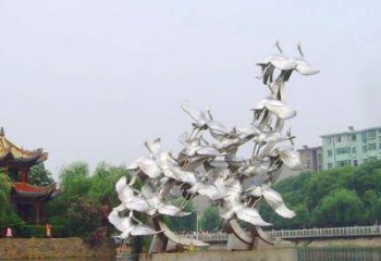 仙鶴彩繪玻璃雕塑,一次欣賞美麗風景