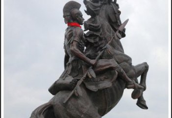 鑫特雕塑 景觀雕塑 擺件雕塑 精致黃銅雕刻草地騎馬人物擺件