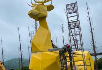 鑫特雕塑 動物雕塑 鹿雕塑 梅花鹿雕塑 大型不銹鋼鏡面抽象梅花鹿雕塑