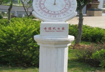 新款創意日晷雕塑是帶觀賞性的戶外小品雕塑。園林建筑按照其功能可以分為五類1供休息的小新款創意校園大理石日晷雕塑。包括各種造型的靠背園椅、凳、桌和遮陽的新款校園大理石日晷雕塑等。常結合環境,用自然塊石或用混凝土作成仿石、仿樹墩的凳、桌。或利用花壇、花臺邊緣的矮墻和地下通氣孔道來作椅、凳等。