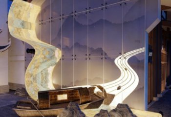 在造型與元素上,雕塑以金、白為主色調,幾何線條構建出富有張力的框架,如同城市發展的 “骨架”。內部融入城市建筑剪影,展現 “山水新都市” 的風貌;機械齒輪等元素,彰顯城市產業的創新活力,呼應 “創智” 主題;還有人文相關的圖案與文字,傳遞 “漁樵新義橋” 的人文內涵,將城市的過去、現在與未來,以及自然、產業、人文等多元維度,通過藝術化的不銹鋼造型與鏡面效果整合呈現。整體而言,雕塑通過不銹鋼的鏡面反射,打破藝術與現實的邊界,讓觀者在欣賞雕塑時,也能從鏡面中看到自己與城市環境,產生互動與共鳴。同時,多元元素的融合,既展現了城市在發展中對自然生態的尊重、對產業創新的追求,也傳承了人文精神,成為一座承載城市記憶、展望城市未來的標志性景觀雕塑,為城市空間增添藝術魅力與文化深度。<br />