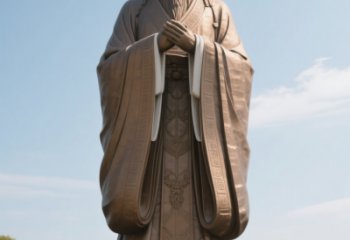先師孔子行教像?萬世師表 本作品為景觀雕塑范疇下的人物雕塑,采用鍛銅雕塑工藝塑造,以中國古代思想家、教育家孔子為核心原型,旨在打造承載儒家文化精神的公共藝術載體。在造型上,雕塑選取孔子 “行教” 經典姿態:雙手疊握于胸前,呈揖禮之態,既體現 “克己復禮” 的儒家倫理,也傳遞出謙和包容的治學態度。人物面容慈祥,目光深邃,長髯飄逸,生動還原了孔子作為 “萬世師表” 的精神氣質;衣紋采用垂墜式線條,輔以回紋、云紋等傳統紋樣鍛刻,既符合古代服飾規制,又通過金屬質感強化了雕塑的厚重感與歷史感。材質選擇鍛銅,既保證了戶外環境下的耐腐蝕性與耐久性,又能通過鍛打工藝呈現細膩的肌理層次,讓人物神態與服飾細節更具表現力。雕塑置于開闊的園林景觀中,與周邊綠植、建筑形成呼應,成為連接歷史與當代、文化與公眾的視覺紐帶,既滿足了景觀美學的需求,也實現了文化傳播的功能,讓觀者在駐足瞻仰中感受儒家文化的深厚底蘊與人文溫度。